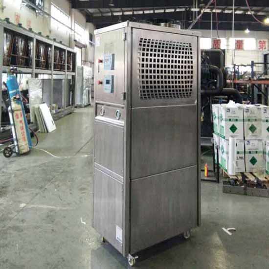 1、風冷式食品行業用不銹鋼制冷加熱一體機組,通過風扇以空氣為冷凝方式的控溫設備;