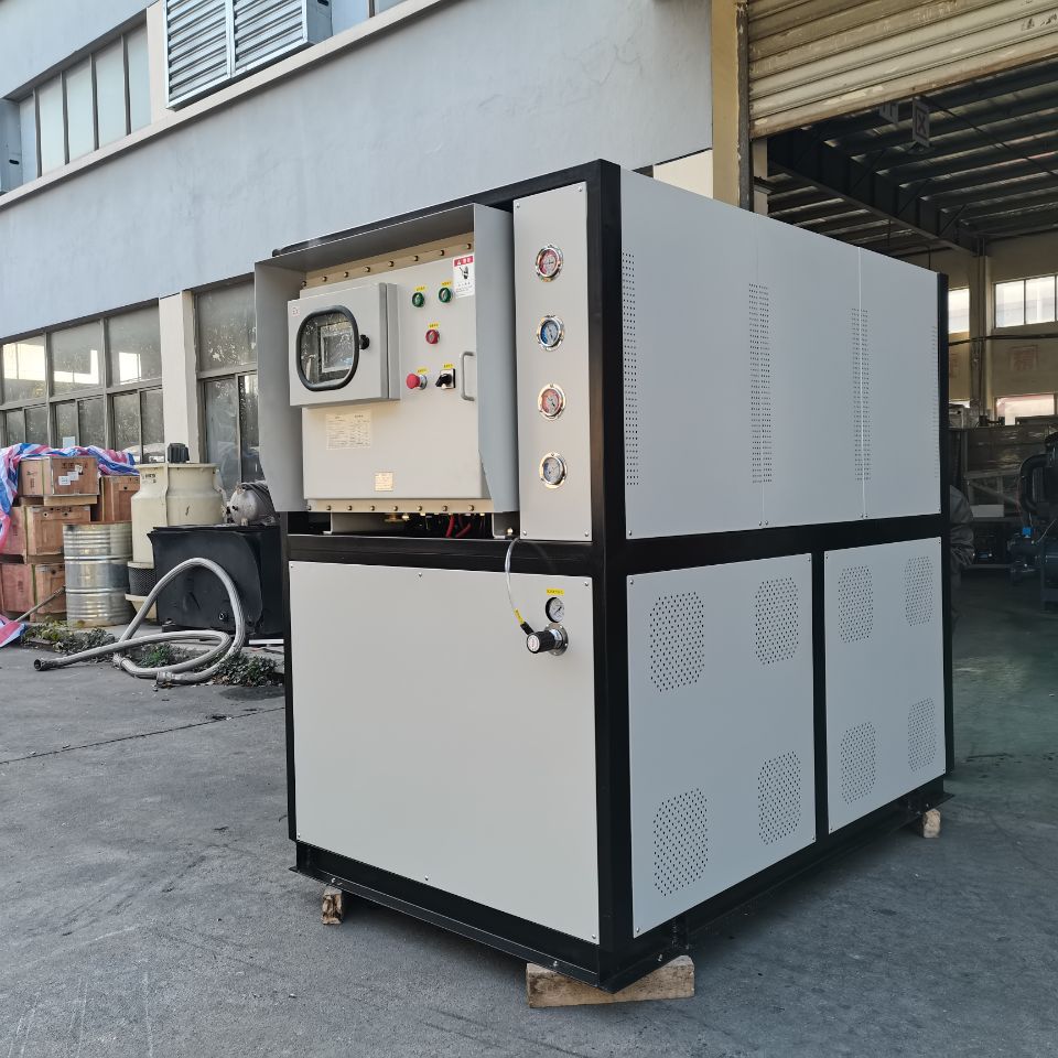 高低溫循環恒控溫裝置可適用于如:乳品、化工、食品、飲料、制藥、醫藥、科研、實驗室等行業的反應鍋爐、夾套罐、反應釜、萃取設備等的恒控溫。高低溫循環恒控溫裝置是同一臺機器配合進行制冷和制熱的制冷制熱溫控設備。結構合理,操作方便,穩定性好。高低溫循環恒控溫裝置根據溫度要求不同可選用乙二醇或硅油等為介質,循環泵是將電能轉化為機械能,推動導熱油液相循環,將熱量傳給反應釜等。導熱油與反應釜等內的物料進行熱交換后返回油加熱器,在其泵的壓力下重新加熱,進入下一個循環。經過反復循環,進行傳熱和輸送,加熱、冷卻或保持反應釜溫度,從而也很好地達到了生產過程所需的溫度要求。