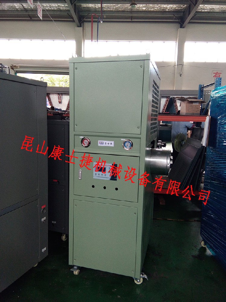 吹膜冷風機專為塑料薄膜吹膜機而設計。冷風機是通過壓縮機制冷,冷媒在冷風換熱器中蒸發吸熱冷卻通過的空氣,吹膜機的內外膜離心鼓風機,通過進風管抽取冷風換熱器冷卻后的低溫冷風,出風溫度5-15℃;然后送入吹膜機的風環,冷卻剛剛從模頭吹出的膜泡,使膜泡平穩、厚度均勻,增加透明度和光澤度,加速薄膜的定型,便于薄膜的撕開,并且提高產20%以上。吹膜冷風機有很強的除濕能力,快速冷卻空氣時,會有大量的冷凝水凝結出來,使送出的冷風低溫而又干燥,大大提高薄膜的品質。