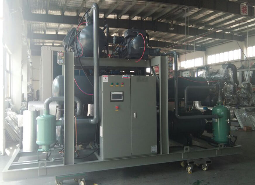 1.單機(jī)雙級壓縮制冷機(jī)組:可提供-25℃~-55℃的低溫工藝?yán)湓?,采用德國比澤爾Bitzer進(jìn)口半封閉雙級壓縮機(jī)組,制冷量范圍2kw~120kw,機(jī)組可多機(jī)模塊組合。