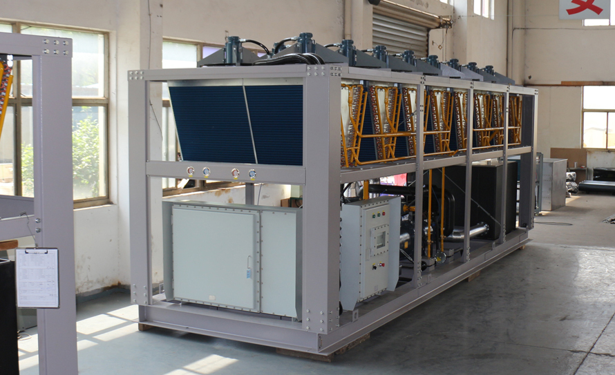 2、以鹽水為載冷劑的風冷螺桿式防爆低溫制冷機組;