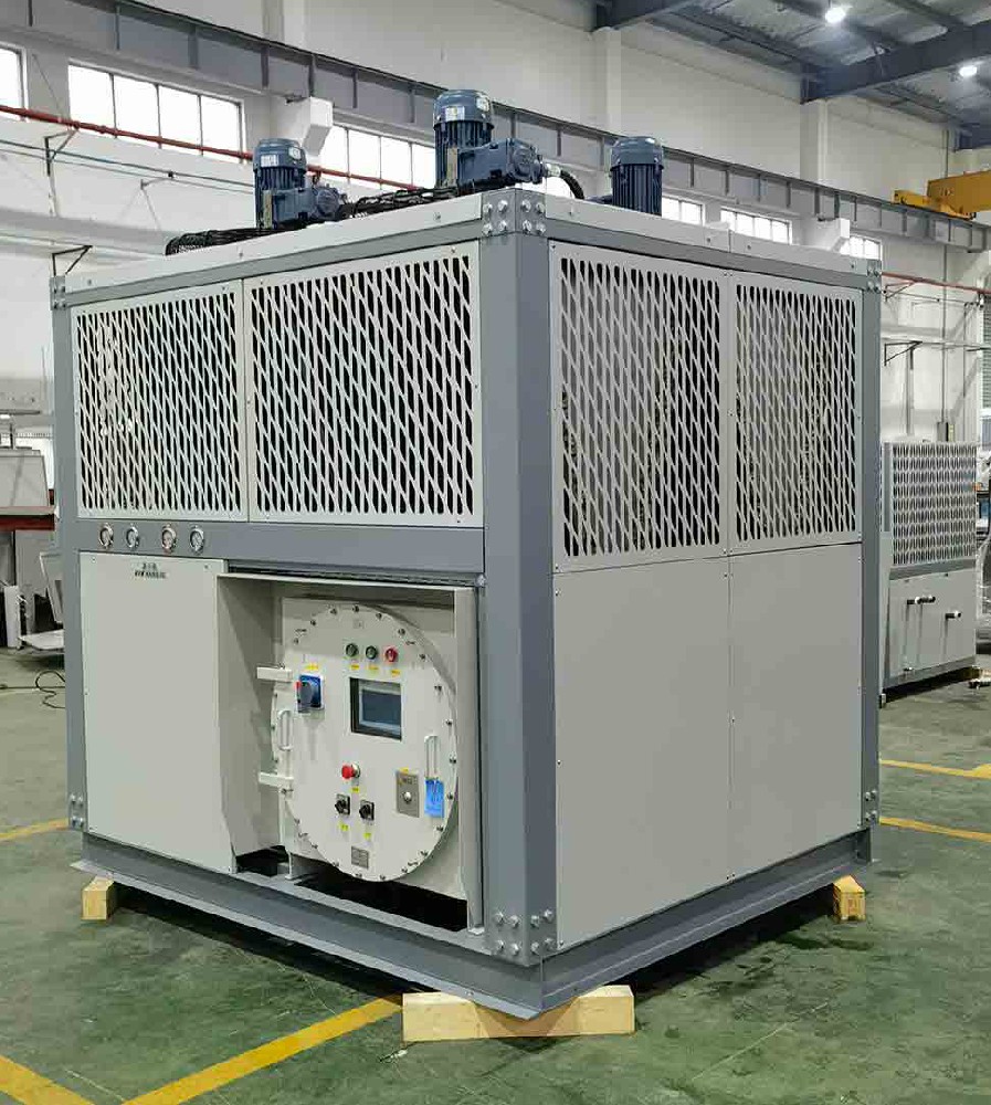 化工防爆制冷機(jī)組是在標(biāo)準(zhǔn)型制冷機(jī)組的基礎(chǔ)上,為防止電氣設(shè)備引起周圍爆炸性氣體環(huán)境引燃而采取的特定的防爆措施,主要應(yīng)用與易燃易爆等特種場(chǎng)所,如:可燃性氣體,粉塵環(huán)境,煉油、化工、石化,加油站、加氣站等,在 爆炸性氣體環(huán)境大氣條件下,氣體、蒸汽或霧狀的可燃物質(zhì)與空氣構(gòu)成的混合物 ,在該混合物中點(diǎn)燃后,燃燒將傳遍整個(gè)未燃混合物的環(huán)境。