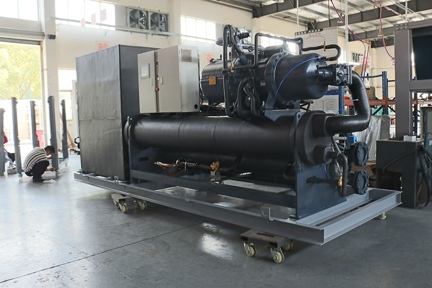 2、水冷式螺桿式工業(yè)冷凍機組,通過冷卻塔以冷卻循環(huán)水為冷凝方式的控溫設備;